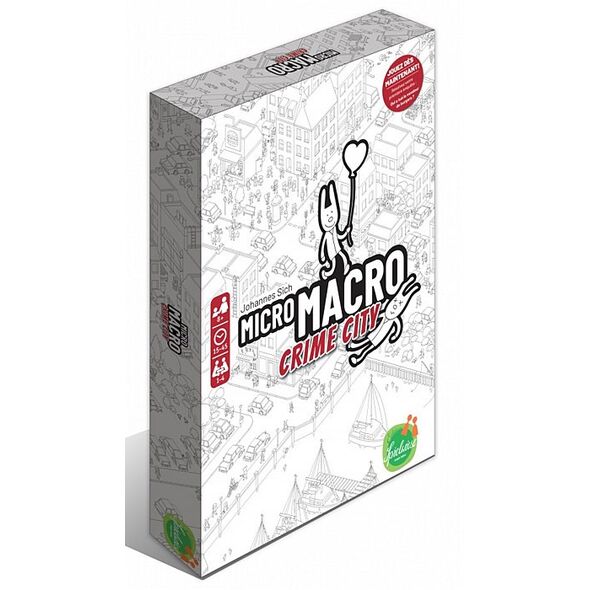 Bienvenue à Crime City, une ville où le crime rôde à tous les coins de rue. Des secrets ignobles, des vols perfides et des meurtres de sang-froid sont à l'ordre du jour ici. La police locale n'est plus en mesure de contrôler la situation. C'est pourquoi le travail d'enquêteurs astucieux est nécessaire. MicroMacro - Crime City est un jeu d'enquête coopératif. Ensemble, les joueurs résolvent 16 affaires criminelles corsées en déterminant les mobiles, en trouvant des preuves et en condamnant les auteurs. Un œil attentif est tout aussi important qu'un talent de déduction afin de résoudre toutes les énigmes sur le grand plateau de jeu de 75 x 110 cm. Une loupe est incluse dans le jeu pour aider à trouver chaque détail.
