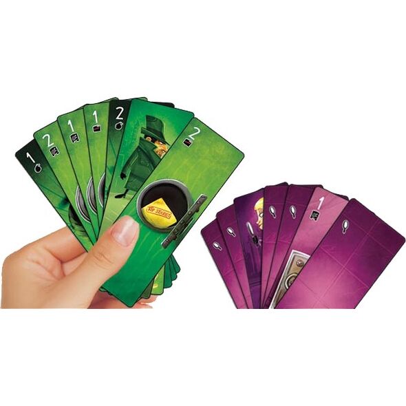 Utilisez votre espion pour analyser la main de votre adversaire, mais attention à ne pas trop en dévoiler sur la vôtre. Le but : forcer le coffre-fort de votre adversaire, puis trouver son dossier top secret avant qu'il ne révèle le vôtre… ou pire encore… que vous ne soyez réduit en miettes par une bombe !