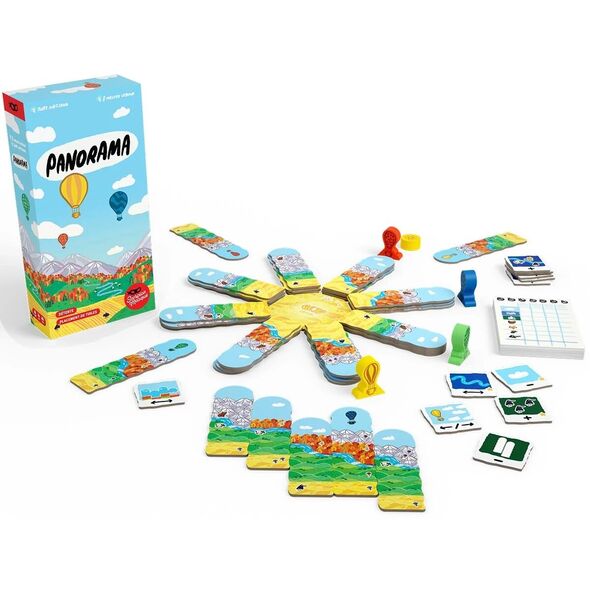 Composez votre panorama, une tuile à la fois. À la fin de la partie, marquez des points en fonction du nombre d’animaux et de fleurs dans votre paysage, car oui, ils adorent la verdure !Mais soyez malin… car plus vous prenez une tuile loin de votre montgolfière, plus vous laissez de tuiles aux autres joueurs !