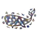 Lors du montage de ce puzzle unique, vous rencontrerez les amis de ce mastodonte. Chaque pièce du puzzle le révèle au fur et à mesure. Vous trouverez des figures emblématiques comme un requin marteau ou bien une tortue, mais encore une hippocampe, des poissons et de nombreux coquillages.