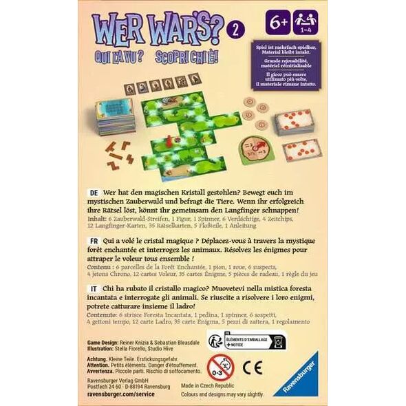 Si un joueur tombe sur un animal, celui-ci lui pose une énigme. Observation attentive et logique sont nécessaires pour résoudre ces énigmes passionnantes. Si la réponse est correcte, chaque joueur reçoit un indice astucieusement dissimulé. Petit à petit, les innocents sont éliminés et le voleur démasqué.