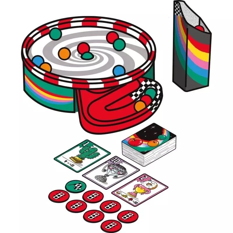 Le jeu Rollie Derby transforme une simple course de billes en une compétition féroce. Accessible et dynamique, le jeu propose une expérience originale mêlant prise de risque, anticipation et manipulation. Le cœur du jeu repose sur une mécanique simple : chaque joueur choisit secrètement combien de billes il souhaite lancer sur le circuit. Ce choix est déterminant, car seules les trois premières billes à atteindre le podium rapportent des points sous forme de cartes Trophée.