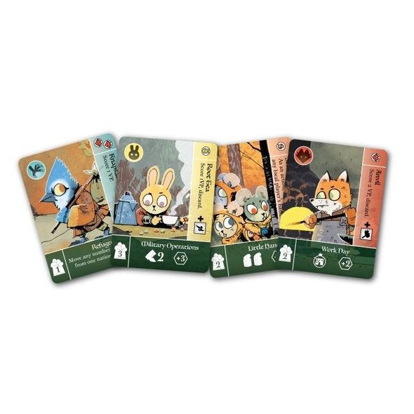 Pendant ce temps, les Eyrie vont tenter de mener leurs oiseaux de proies pour contrôler la forêt. Chaque joueur a des capacités uniques et une condition de victoire différente.