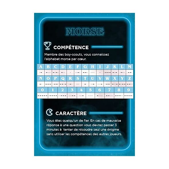 Ce coffret contient : - 1 livret 24 pages (scénario, préparations, règles, solutions) - 60 cartes réparties en 6 missions et en plusieurs catégories de jeux - 1 plan de la ville - 1 journal - 10 enveloppes