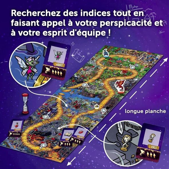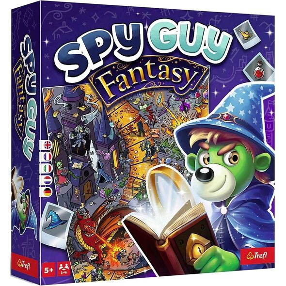 Spy Guy Fantasy est un jeu de coopération dans lequel les joueurs doivent faire preuve d'une grande attention au détail et travailler ensemble. Joignez vos forces pour chercher les indices disséminés sur la grande carte. Plus vous trouverez d'indices, et plus vous aurez de chances de récupérer le trésor sans vous faire prendre par le dragon !
