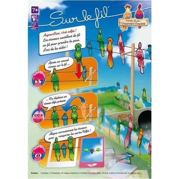 Tout le monde aime se prendre en selfie… et les oiseaux ne font pas exception ! Les voici qui sautillent joyeusement de fil en fil avant d'immortaliser leurs poses au travers de photos souvenir délirantes. Aide-les à reproduire les figures demandées par les cartes Selfie et marquer un maximum de points.