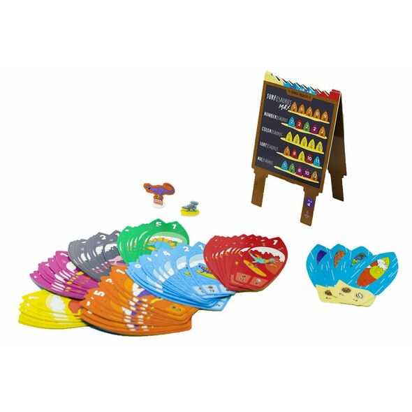 Les cartes de Surfosaurus MAX se déclinent en sept couleurs, avec des valeurs allant de 1 à 12. Plus la valeur d'une carte est élevée, moins il y a de points de victoire.