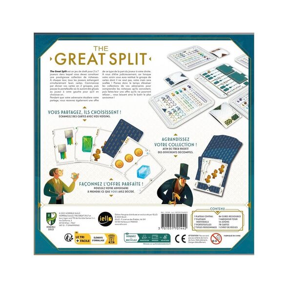 Chaque type de richesse vous octroie des points de prestige de manière différente. Conservez donc une collection équilibrée de pierres précieuses, gardez un œil sur l'évolution de la valeur du marché de l'art et accumulez des tomes d'une valeur inestimable. En fonction de la façon dont chaque joueur constitue sa collection, les différentes richesses prendront une valeur différente pour chacun d'entre eux. Montrez vos talents de marchandage en élaborant votre partage, et créez l'offre parfaite pour pousser votre adversaire à prendre ce que vous voulez qu'il prenne... en vous laissant le butin le plus savoureux !