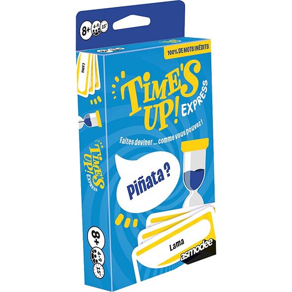 Time's Up Express se joue en équipe en 3 manches et le but est toujours de deviner un maximum de cartes : d'abord en décrivant le mot sans le nommer, puis à l'aide d'un seul mot et enfin en mimant. Découvrez dans cette version plus de 200 mots, avec des thèmes inédits et tendance qui vous garantissent des moments mémorables en famille et entre amis.
