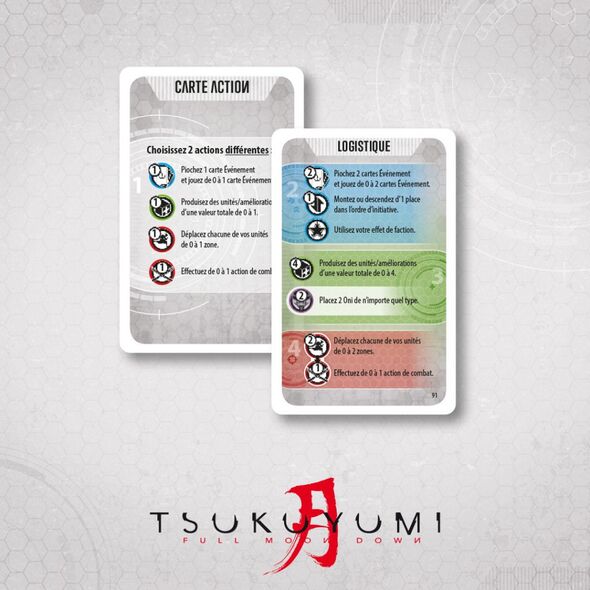 Allez-vous submerger le champ de bataille avec les terribles essaims de la Nuée Noire ? Ou bien allez-vous profiter de la mobilité, des armes et des tactiques des Nomades pour dicter votre volonté à vos adversaires ? Peut-être préférez-vous l’approche scientifique pure et les avantages technologiques des Cyber-samouraïs, ou bien encore la sauvagerie et la ténacité des Seigneurs sangliers. Quel que soit votre choix, tous devront combattre les Oni, serviteurs du dragon blanc qui se cache dans la Lune ! Chaque partie de Tsukuyumi sera unique, et pas seulement grâce à la diversité des factions.