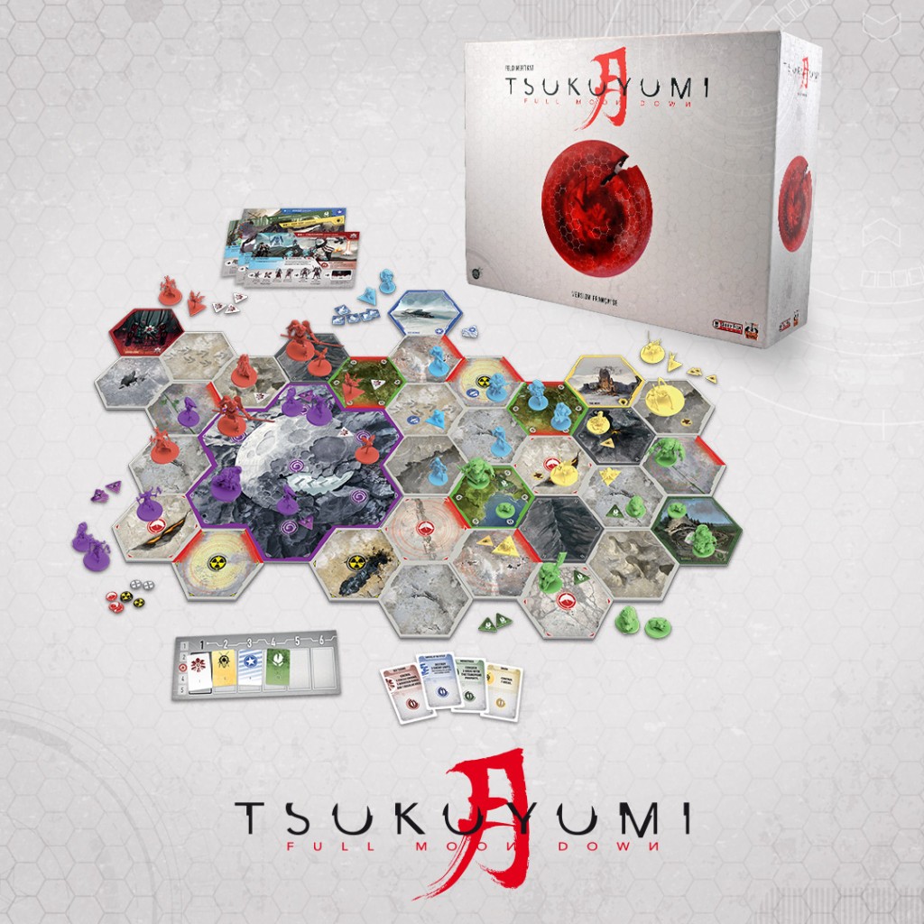 Tsukuyumi : Full Moon Down est un jeu de plateau exceptionnel se déroulant dans un univers conçu et réalisé de toute pièce par l’auteur et artiste Felix Mertikat. Dans un futur ou la Lune s’est écrasée sur la Terre, le monde est bouleversé par un chaos dévastateur, l’humanité a été décimée et de nouvelles espèces mutantes se sont développées. Il s’agit d’un jeu centré sur la stratégie, l’habileté des joueurs et les caractéristiques uniques de chaque faction.