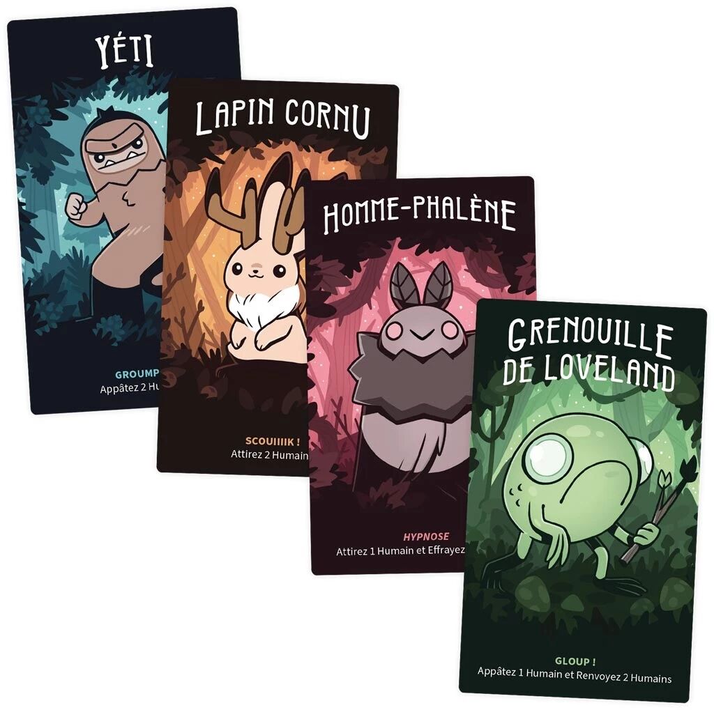 Choisissez votre Cryptide préféré et préparez-vous à jouer ! Chaque carte Cryptide comporte un Pouvoir unique que vous pourrez utiliser à votre avantage pendant la Phase de Jour.