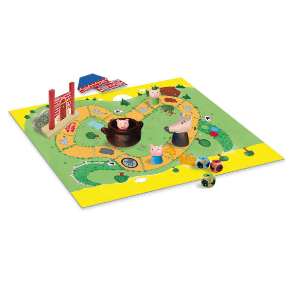 Les joueurs cherchent à construire la maison de brique afin d'y mettre en sécurité les 3 petits cochons avant que le loup ne les ait attrapés et mis dans la marmite. Un jeu idéal pour les petits qui s'allient pour gagner contre le loup.