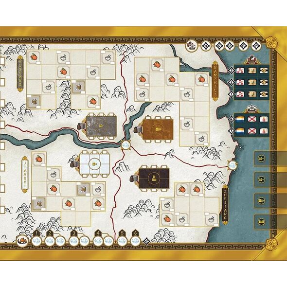 Dans Yínzi - Ming, les joueurs représentent des clans marchands développant des parties de la Chine à la fin de la période Ming, au début du 17ème siècle, le long des 200 derniers kilomètres de l’immense fleuve Yangtsé avant qu’il n’atteigne la mer de Chine. Les joueurs devront planter des cultures, vendre des biens au marché urbain, développer des matières premières, construire et améliorer des manufactures, et vendre leurs marchandises aux navires étrangers venus du monde entier et déjà en attente dans le port, leurs cales pleines du fameux “Yinzi”.